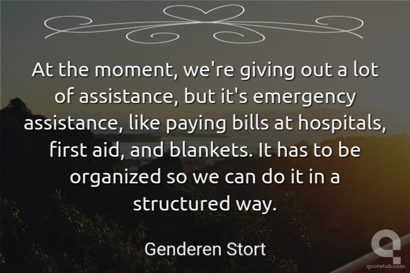 At the moment, we're giving out a lot of assistance, but it's emergency assistance, like paying bills at hospitals, first aid, and blankets. It has to be organized so we can do it in a structured way.