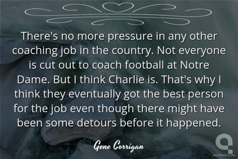 There's no more pressure in any other coaching job in the country, ... Not everyone is cut out to coach football at Notre Dame. But I think Charlie is. That's why I think they eventually got the best person for the job even though there might have been some detours before it happened.