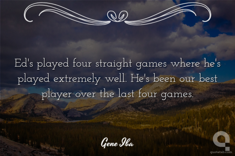 Ed's played four straight games where he's played extremely well. He's been our best player over the last four games.
