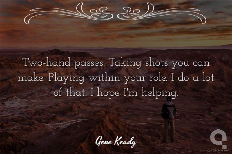 Two-hand passes. Taking shots you can make. Playing within your role. I do a lot of that. I hope I'm helping.
