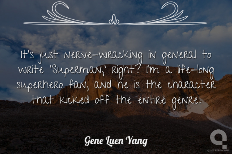 It's just nerve-wracking in general to write 'Superman,' right? I'm a life-long superhero fan, and he is the character that kicked off the entire genre.