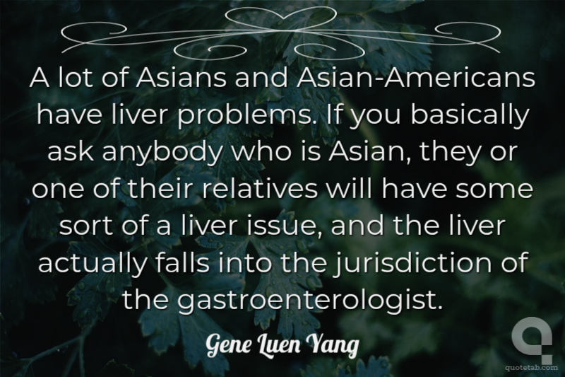 A lot of Asians and Asian-Americans have liver problems. If you basically ask anybody who is Asian, they or one of their relatives will have some sort of a liver issue, and the liver actually falls into the jurisdiction of the gastroenterologist.