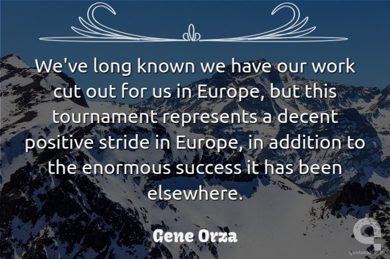 We've long known we have our work cut out for us in Europe, but this tournament represents a decent positive stride in Europe, in addition to the enormous success it has been elsewhere.