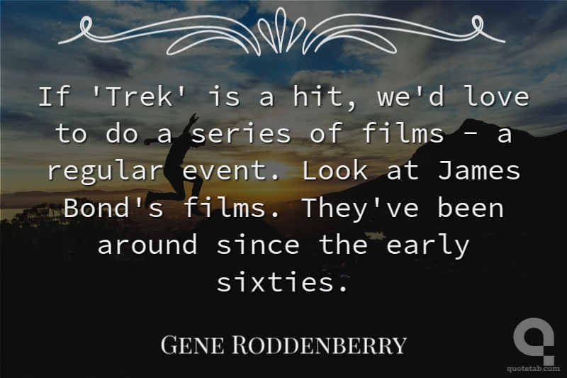 If 'Trek' is a hit, we'd love to do a series of films - a regular event. Look at James Bond's films. They've been around since the early sixties.