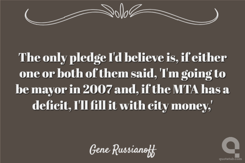 The only pledge I'd believe is, if either one or both of them said, 'I'm going to be mayor in 2007 and, if the MTA has a deficit, I'll fill it with city money,'