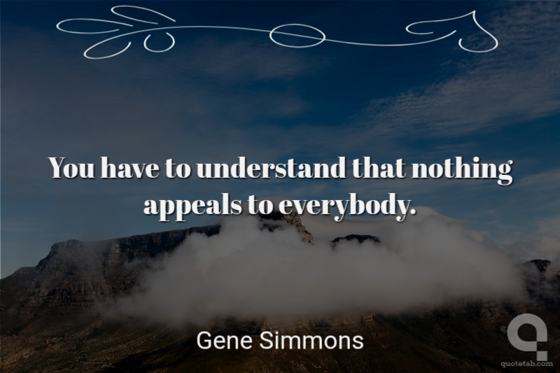 You have to understand that nothing appeals to everybody.