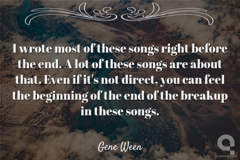I wrote most of these songs right before the end. A lot of these songs are about that. Even if it's not direct, you can feel the beginning of the end of the breakup in these songs.