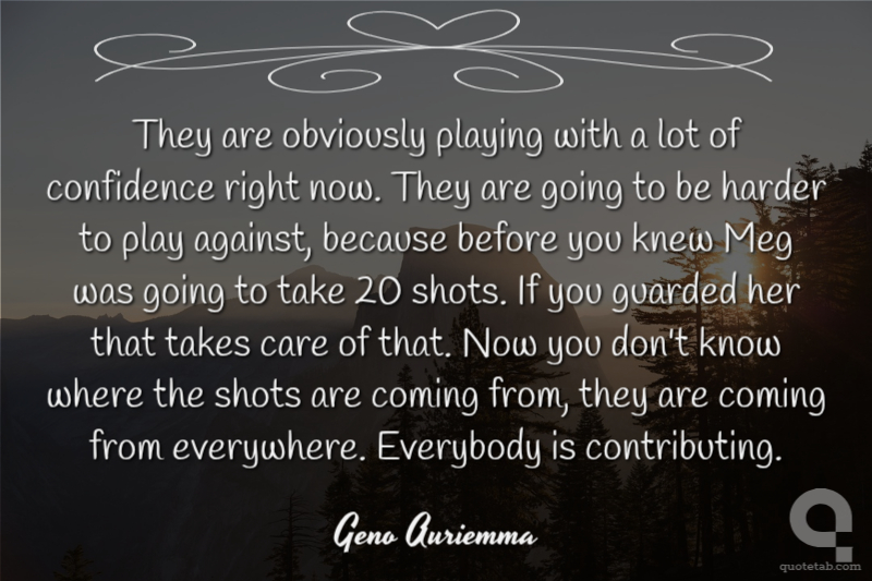 They are obviously playing with a lot of confidence right now. They are going to be harder to play against, because before you knew Meg was going to take 20 shots. If you guarded her that takes care of that. Now you don't know where the shots are coming from, they are coming from everywhere. Everybody is contributing.