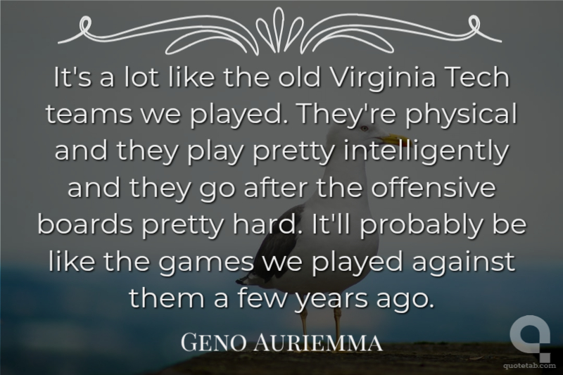 It's a lot like the old Virginia Tech teams we played. They're physical and they play pretty intelligently and they go after the offensive boards pretty hard. It'll probably be like the games we played against them a few years ago.