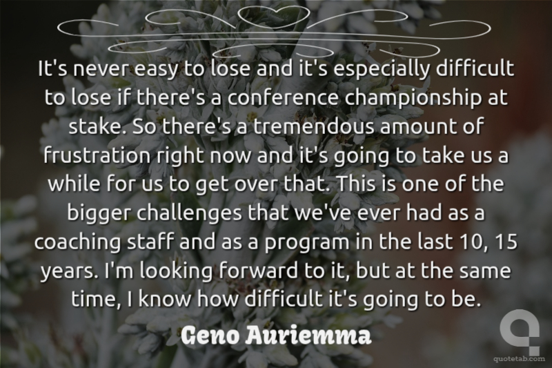 It's never easy to lose and it's especially difficult to lose if there's a conference championship at stake. So there's a tremendous amount of frustration right now and it's going to take us a while for us to get over that. This is one of the bigger challenges that we've ever had as a coaching staff and as a program in the last 10, 15 years. I'm looking forward to it, but at the same time, I know how difficult it's going to be.