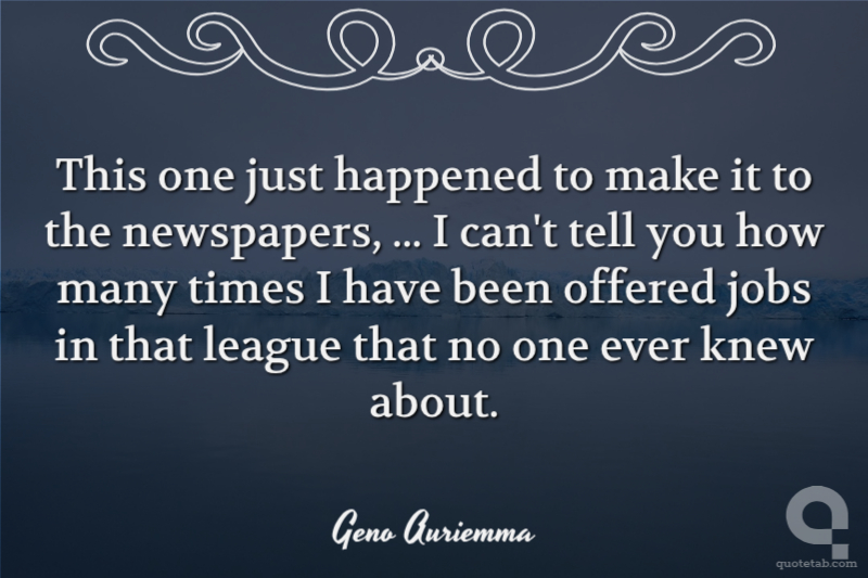 This one just happened to make it to the newspapers, ... I can't tell you how many times I have been offered jobs in that league that no one ever knew about.