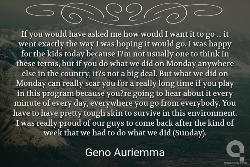 If you would have asked me how would I want it to go ... it went exactly the way I was hoping it would go. I was happy for the kids today because I?m not usually one to think in these terms, but if you do what we did on Monday anywhere else in the country, it?s not a big deal. But what we did on Monday can really scar you for a really long time if you play in this program because you?re going to hear about it every minute of every day, everywhere you go from everybody. You have to have pretty tough skin to survive in this environment. I was really proud of our guys to come back after the kind of week that we had to do what we did (Sunday).