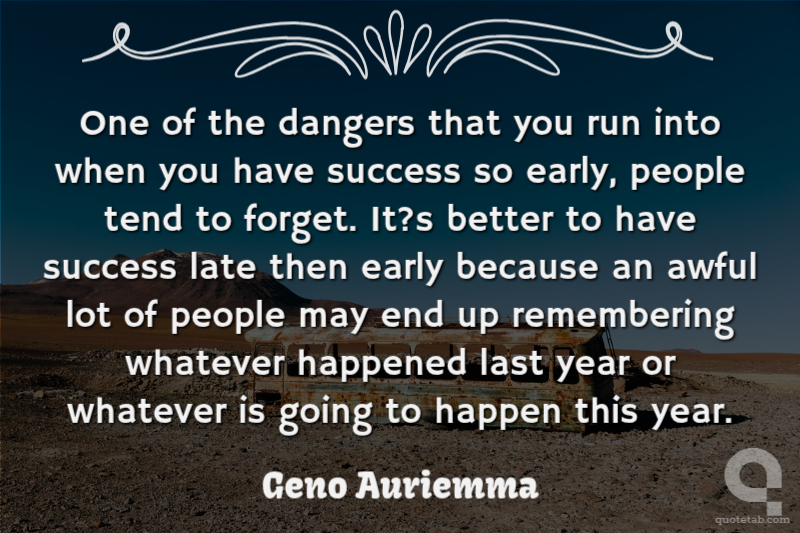 One of the dangers that you run into when you have success so early, people tend to forget. It?s better to have success late then early because an awful lot of people may end up remembering whatever happened last year or whatever is going to happen this year.
