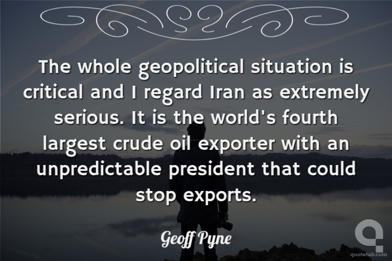 The whole geopolitical situation is critical and I regard Iran as extremely serious. It is the world's fourth largest crude oil exporter with an unpredictable president that could stop exports.