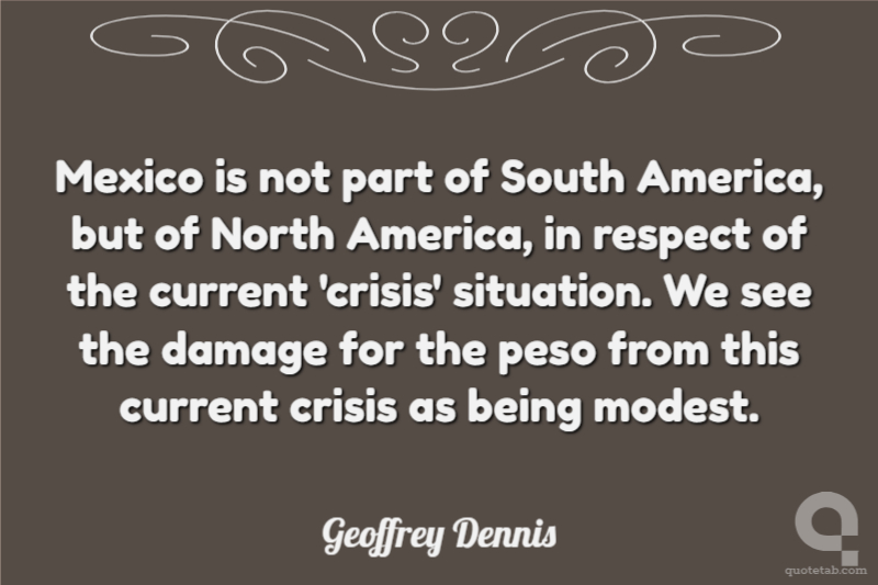 Mexico is not part of South America, but of North America, in respect of the current 'crisis' situation. We see the damage for the peso from this current crisis as being modest.