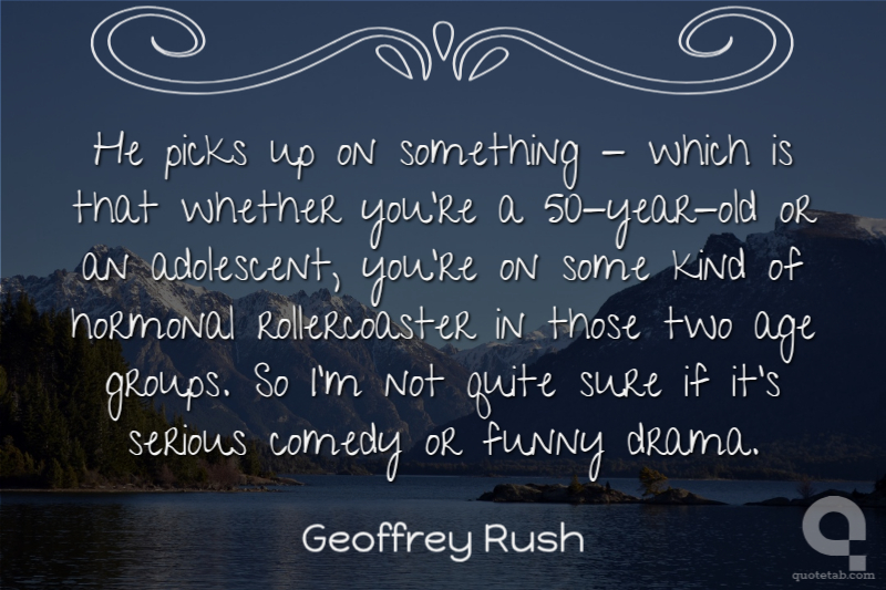 He picks up on something - which is that whether you're a 50-year-old or an adolescent, you're on some kind of hormonal rollercoaster in those two age groups. So I'm not quite sure if it's serious comedy or funny drama.