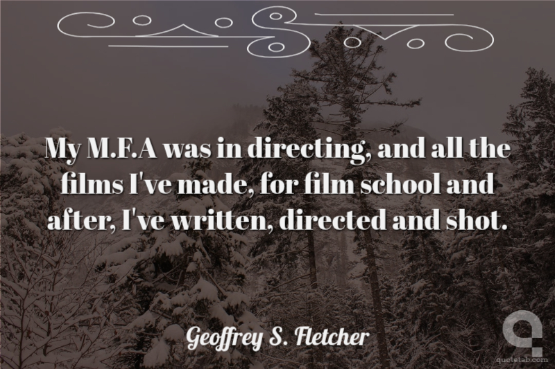 My M.F.A was in directing, and all the films I've made, for film school and after, I've written, directed and shot.