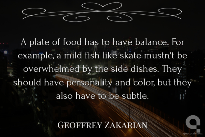 A plate of food has to have balance. For example, a mild fish like skate mustn't be overwhelmed by the side dishes. They should have personality and color, but they also have to be subtle.