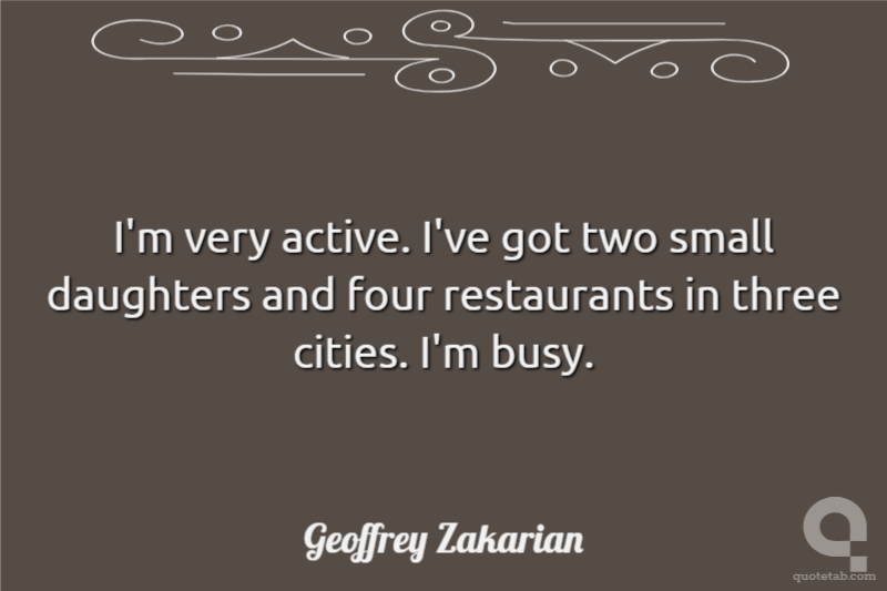 I'm very active. I've got two small daughters and four restaurants in three cities. I'm busy.