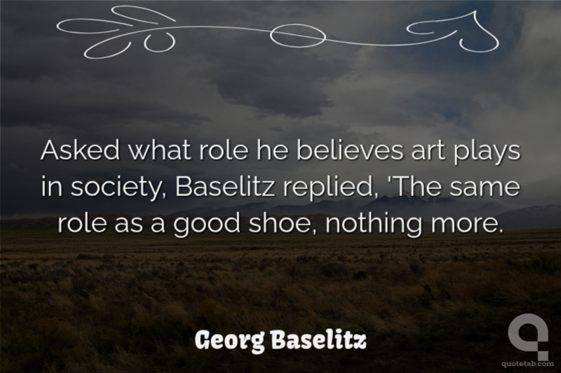 Asked what role he believes art plays in society, Baselitz replied, 'The same role as a good shoe, nothing more.