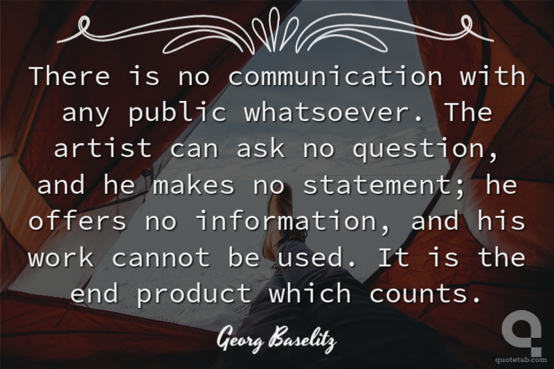 There is no communication with any public whatsoever. The artist can ask no question, and he makes no statement; he offers no information, and his work cannot be used. It is the end product which counts.