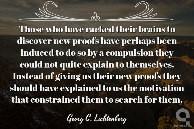 Those who have racked their brains to discover new proofs have perhaps been induced to do so by a compulsion they could not quite explain to themselves. Instead of giving us their new proofs they should have explained to us the motivation that constrained them to search for them.
