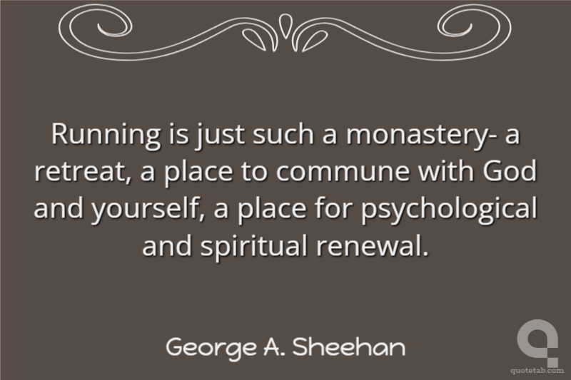 Running is just such a monastery- a retreat, a place to commune with God and yourself, a place for psychological and spiritual renewal.
