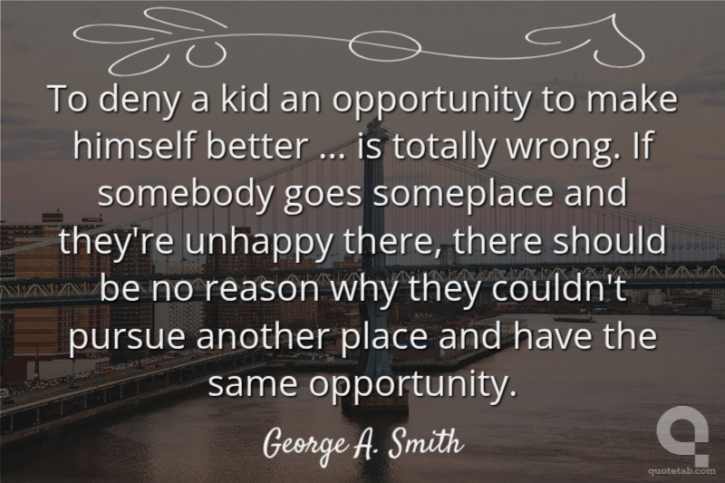 To deny a kid an opportunity to make himself better ... is totally wrong. If somebody goes someplace and they're unhappy there, there should be no reason why they couldn't pursue another place and have the same opportunity.