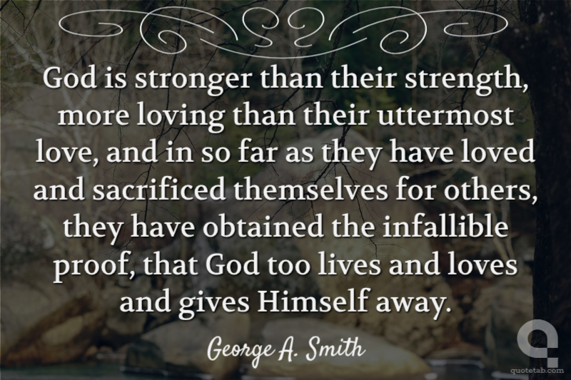 God is stronger than their strength, more loving than their uttermost love, and in so far as they have loved and sacrificed themselves for others, they have obtained the infallible proof, that God too lives and loves and gives Himself away.