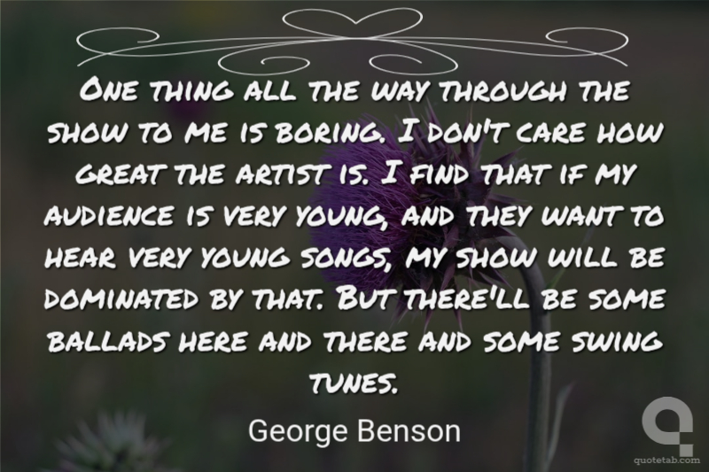 One thing all the way through the show to me is boring. I don't care how great the artist is. I find that if my audience is very young, and they want to hear very young songs, my show will be dominated by that. But there'll be some ballads here and there and some swing tunes.