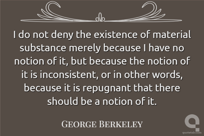 I do not deny the existence of material substance merely because I have no notion of it, but because the notion of it is inconsistent, or in other words, because it is repugnant that there should be a notion of it.