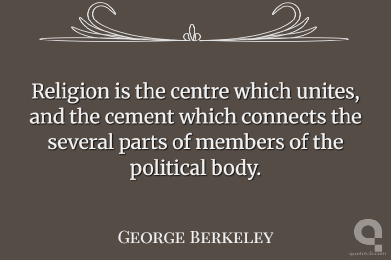 Religion is the centre which unites, and the cement which connects the several parts of members of the political body.