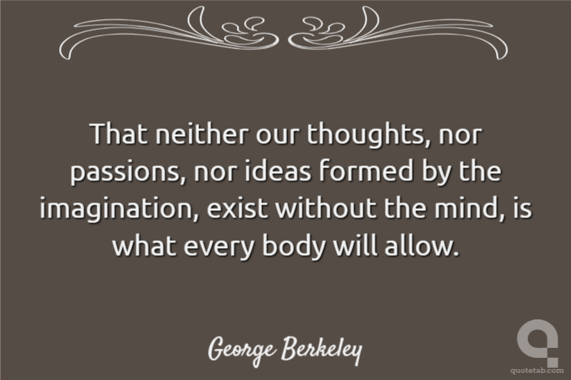 That neither our thoughts, nor passions, nor ideas formed by the imagination, exist without the mind, is what every body will allow.