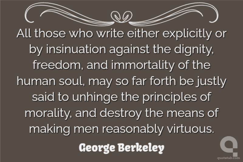 All those who write either explicitly or by insinuation against the dignity, freedom, and immortality of the human soul, may so far forth be justly said to unhinge the principles of morality, and destroy the means of making men reasonably virtuous.