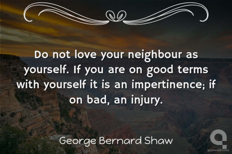 Do not love your neighbour as yourself. If you are on good terms with yourself it is an impertinence; if on bad, an injury.
