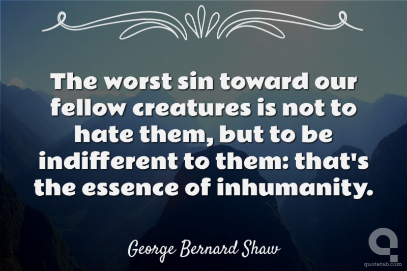 The worst sin toward our fellow creatures is not to hate them, but to be indifferent to them: that's the essence of inhumanity.