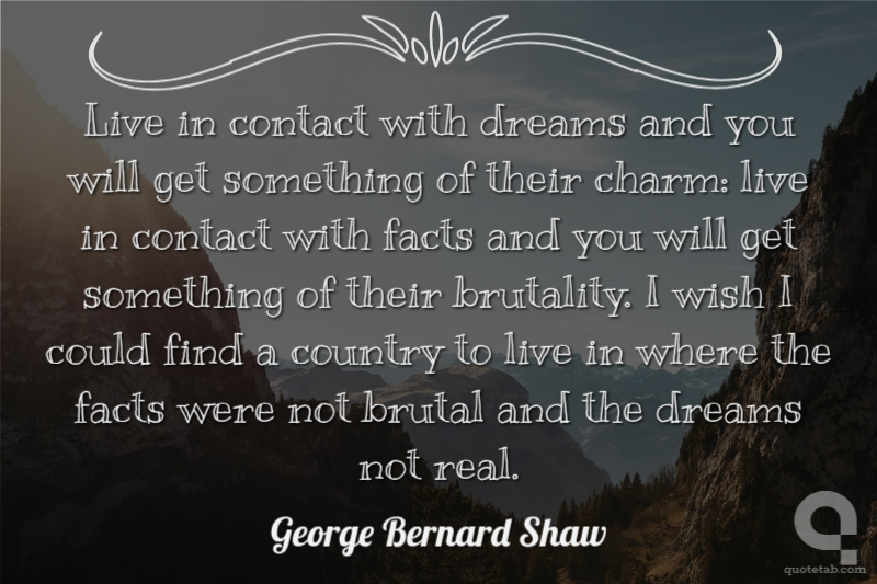 Live in contact with dreams and you will get something of their charm: live in contact with facts and you will get something of their brutality. I wish I could find a country to live in where the facts were not brutal and the dreams not real.