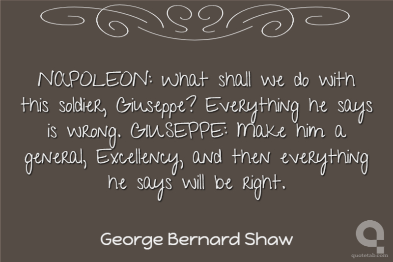 NAPOLEON: What shall we do with this soldier, Giuseppe? Everything he says is wrong. GIUSEPPE: Make him a general, Excellency, and then everything he says will be right.