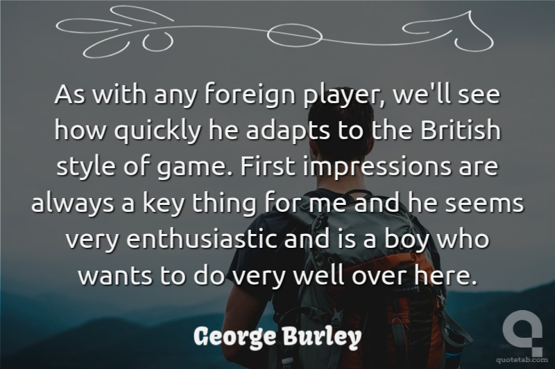 As with any foreign player, we'll see how quickly he adapts to the British style of game. First impressions are always a key thing for me and he seems very enthusiastic and is a boy who wants to do very well over here.