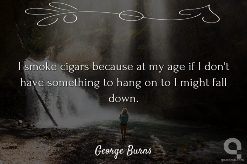 I smoke cigars because at my age if I don't have something to hang on to I might fall down.