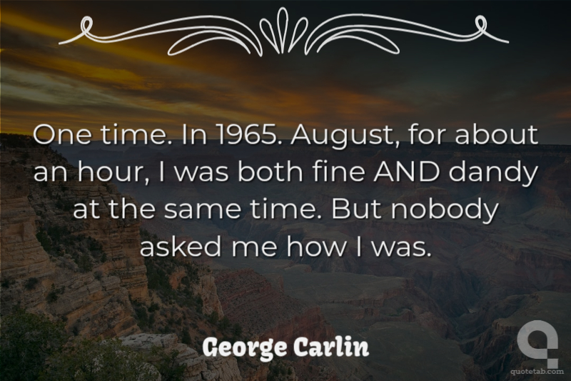 One time. In 1965. August, for about an hour, I was both fine AND dandy at the same time. But nobody asked me how I was.