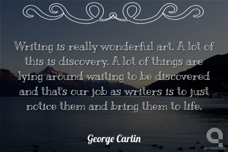 Writing is really wonderful art. A lot of this is discovery. A lot of things are lying around waiting to be discovered and that's our job as writers is to just notice them and bring them to life.