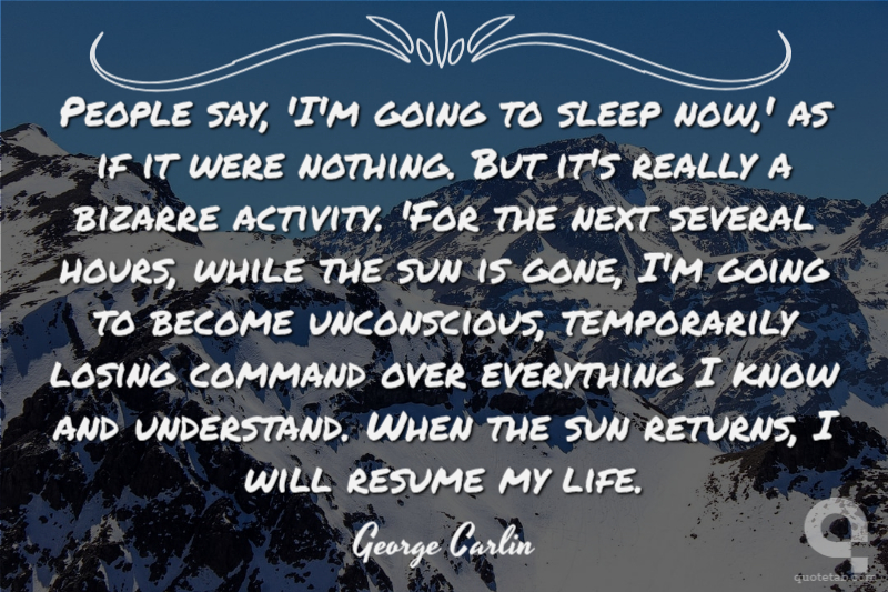 People say, 'I'm going to sleep now,' as if it were nothing. But it's really a bizarre activity. 'For the next several hours, while the sun is gone, I'm going to become unconscious, temporarily losing command over everything I know and understand. When the sun returns, I will resume my life.