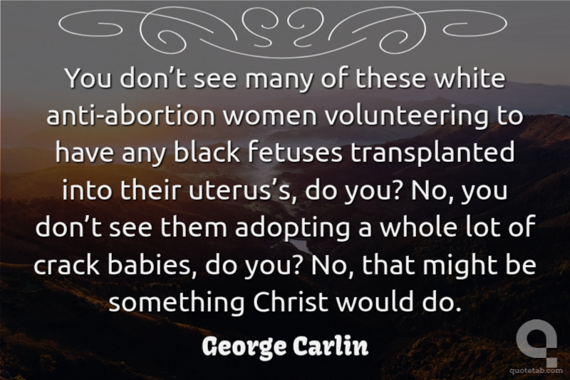You don’t see many of these white anti-abortion women volunteering to have any black fetuses transplanted into their uterus’s, do you? No, you don’t see them adopting a whole lot of crack babies, do you? No, that might be something Christ would do.