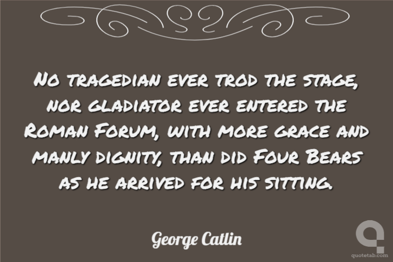 No tragedian ever trod the stage, nor gladiator ever entered the Roman Forum, with more grace and manly dignity, than did Four Bears as he arrived for his sitting.