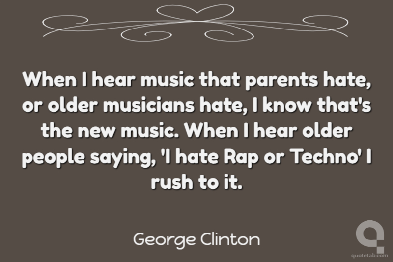 When I hear music that parents hate, or older musicians hate, I know that's the new music. When I hear older people saying, 'I hate Rap or Techno' I rush to it.