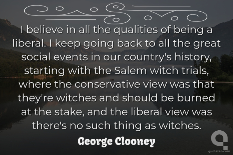 I believe in all the qualities of being a liberal. I keep going back to all the great social events in our country's history, starting with the Salem witch trials, where the conservative view was that they're witches and should be burned at the stake, and the liberal view was there's no such thing as witches.