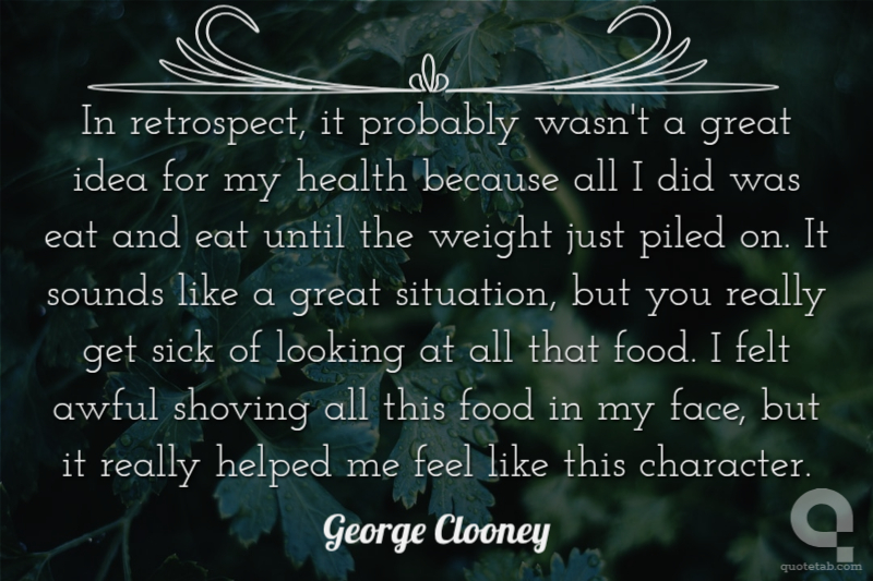 In retrospect, it probably wasn't a great idea for my health because all I did was eat and eat until the weight just piled on. It sounds like a great situation, but you really get sick of looking at all that food. I felt awful shoving all this food in my face, but it really helped me feel like this character.