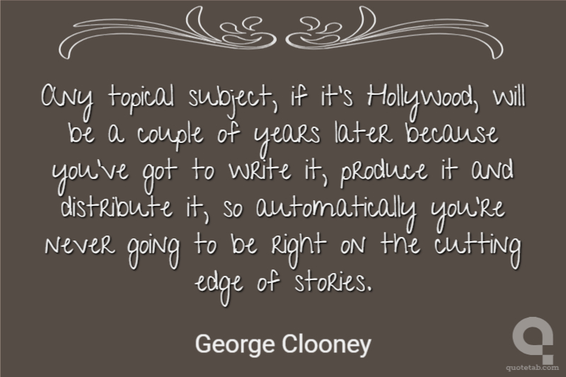 Any topical subject, if it's Hollywood, will be a couple of years later because you've got to write it, produce it and distribute it, so automatically you're never going to be right on the cutting edge of stories.