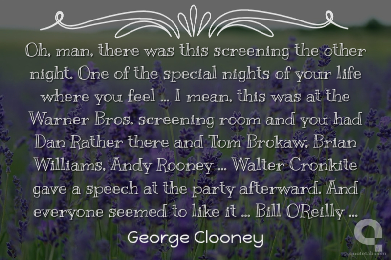 Oh, man, there was this screening the other night. One of the special nights of your life where you feel ... I mean, this was at the Warner Bros. screening room and you had Dan Rather there and Tom Brokaw, Brian Williams, Andy Rooney ... Walter Cronkite gave a speech at the party afterward. And everyone seemed to like it ... Bill O'Reilly ...